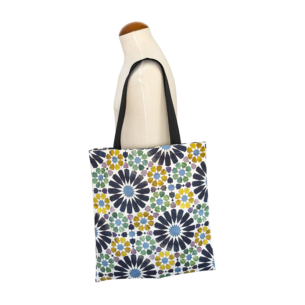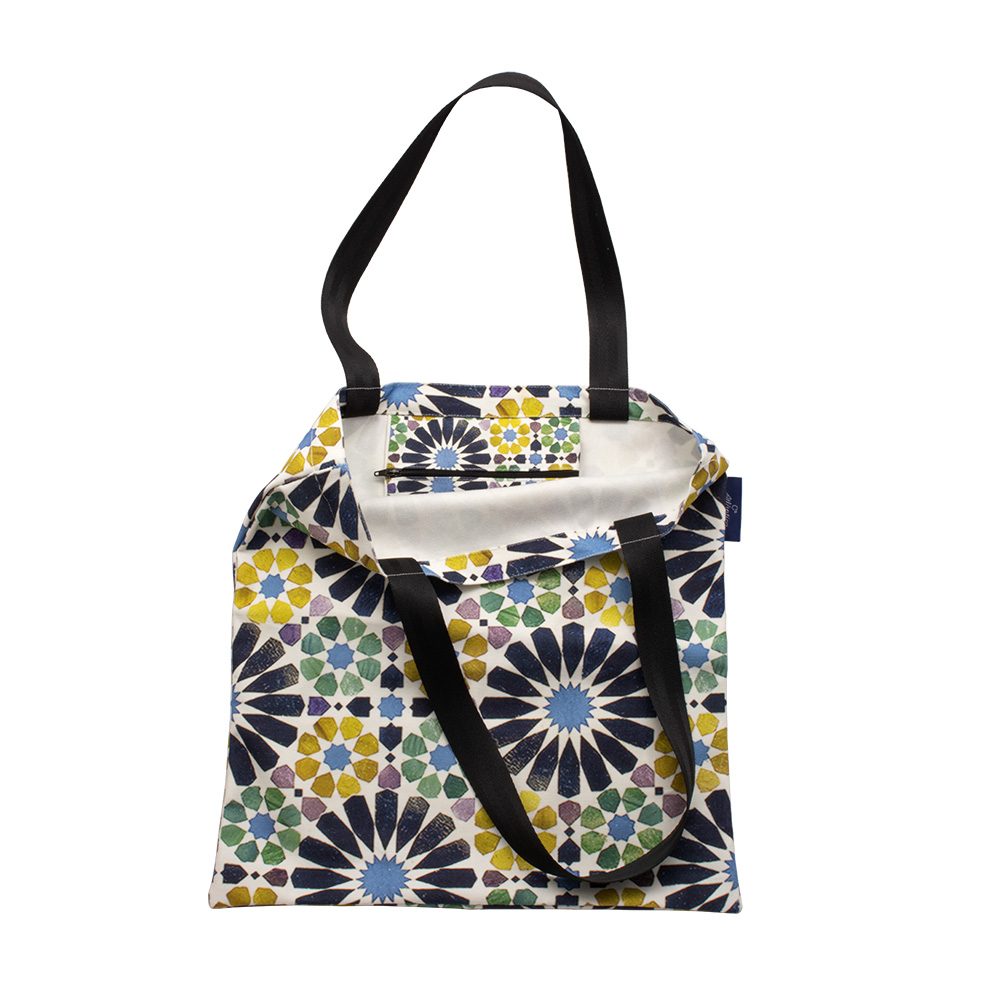 100% cotton shopper inspired by the alicatados tiles with zippered and printed inner pocket. Polyester straps for extra resistance.