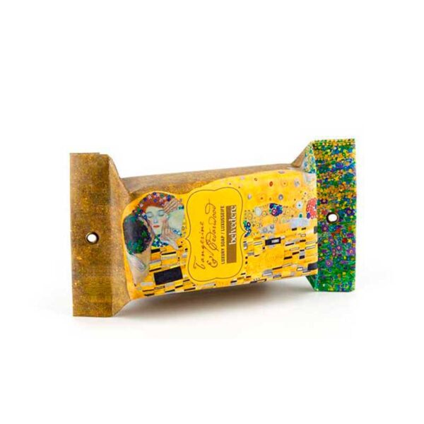 The design of this soap is as lavish as its aroma. Packaged in paper with a matte finish, every detail has been carefully considered to provide a sense of luxury and elegance. Inspired by the iconic painting “Der Kuss” by renowned artist Gustav Klimt, the soap features a design that evokes the distinctive elements of the masterpiece, from intricate patterns to a rich and vibrant color palette.