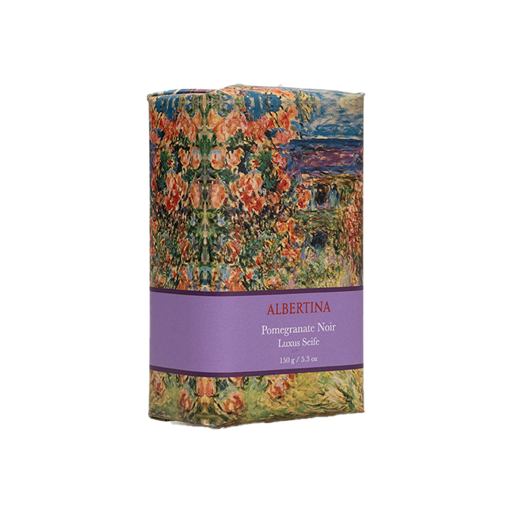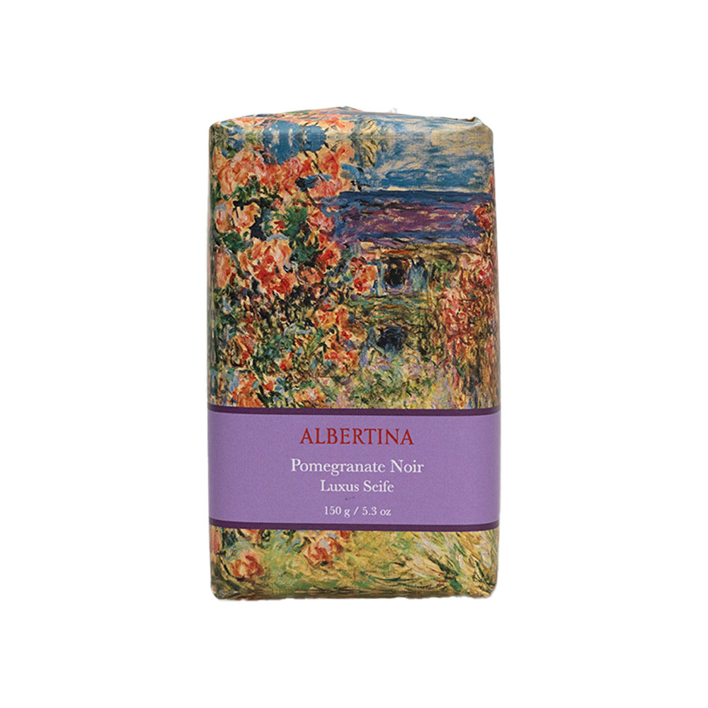 Step into the enchanting world of Claude Monet?s House With Roses with this 150g soap, carefully crafted in Portugal. Blending the sweet, invigorating scent of Pomegranate Noir with packaging that reflects the delicate beauty and impressionistic brushwork of Monet?s painting, it transforms everyday self-care into an artistic experience.