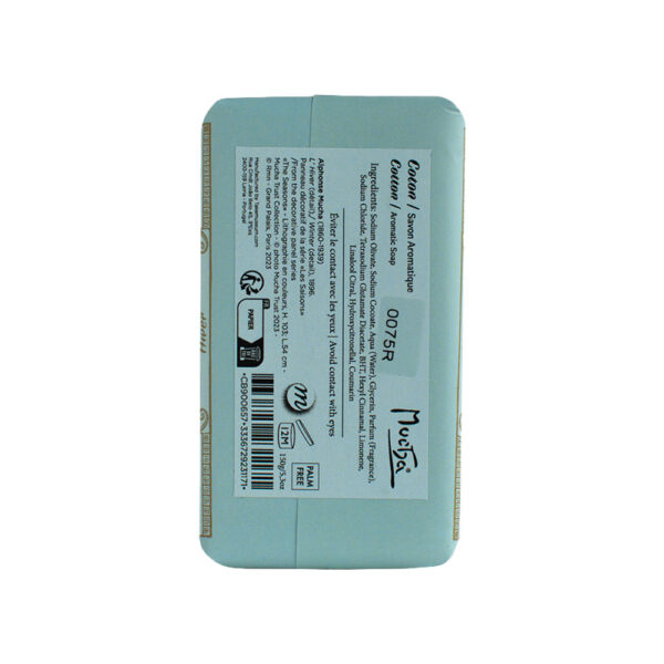Inspired by timeless elegance, the Soap 150g RMN Mucha Printemps combines classic artistry with a soft Cotton fragrance. Wrapped in matte-laminated 115g coated paper and featuring Mucha’s iconic “Printemps” illustration, this oval soap adds a refined touch to any daily ritual.