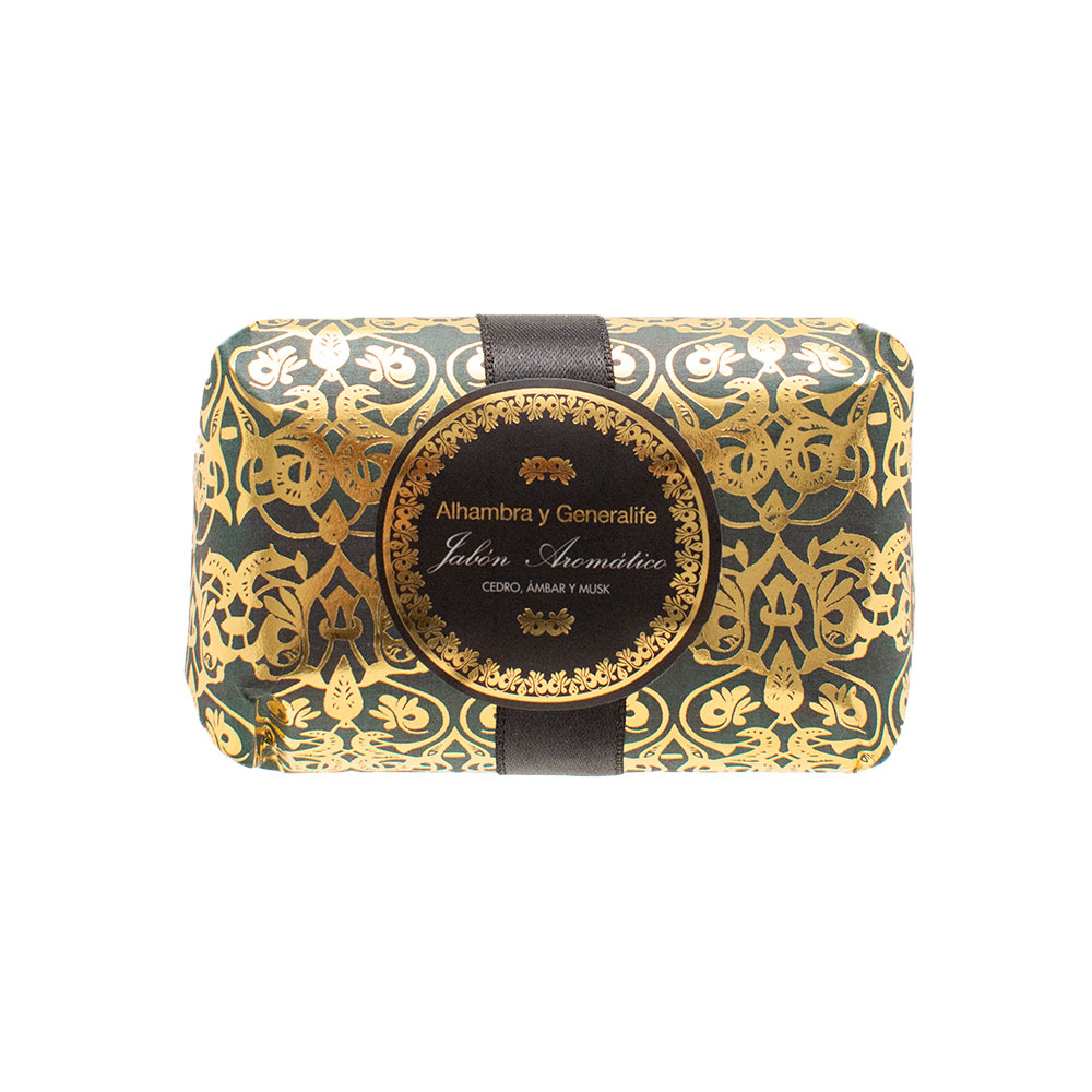 With warm, enveloping notes of cedar, amber, and musk, this 150g oval soap offers a luxurious sensory experience that lingers long after use. Its scent evokes the calm of ancient courtyards and the richness of handcrafted interiors, turning a daily wash into a quiet moment of reflection. The finely embossed surface, bearing the “Alhambra y Generalife” seal, echoes the geometric harmony of Moorish patterns, while the deep brown tone and black ribbon add a touch of understated elegance. Ideal for those who appreciate the art of fragrance and meaningful design, this soap is both a personal indulgence and a beautiful gift — a refined addition to any bathroom or guest space. Each bar tells a story of heritage, warmth, and timeless craftsmanship.