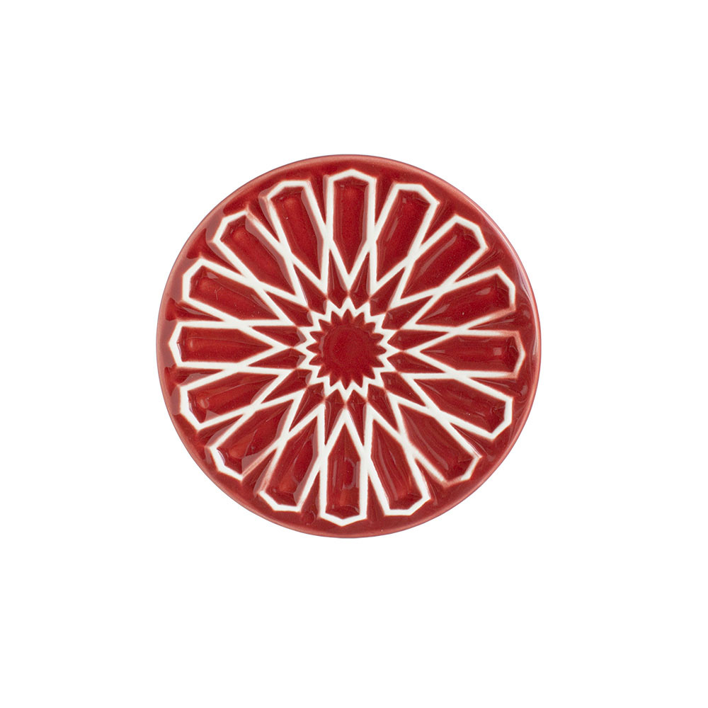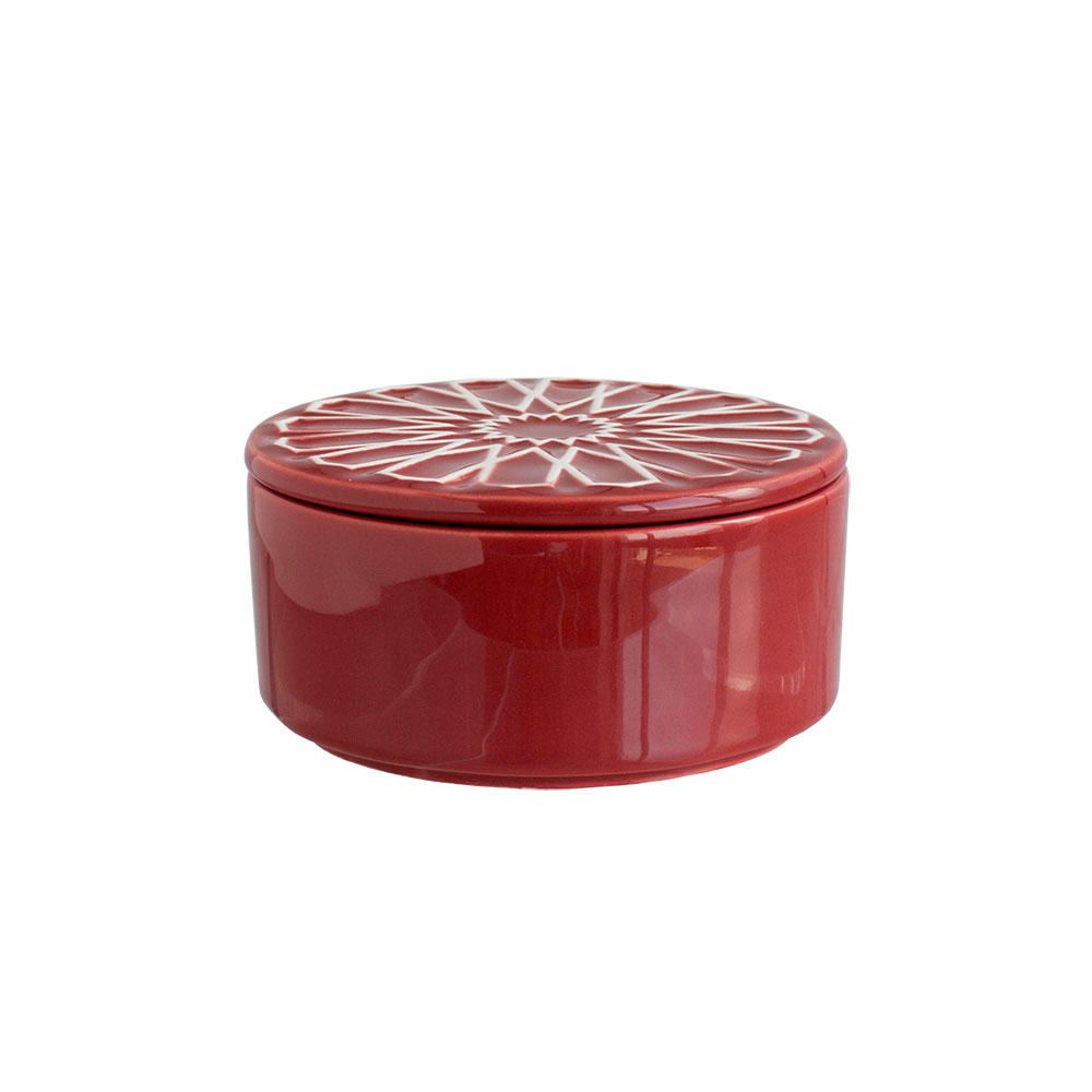 Store your treasures in style with the ALICATOS Jewelery Box Ø12 Red. Featuring hand-decorated ceramic with embossed tile motifs, it blends practical use with artistic charm.