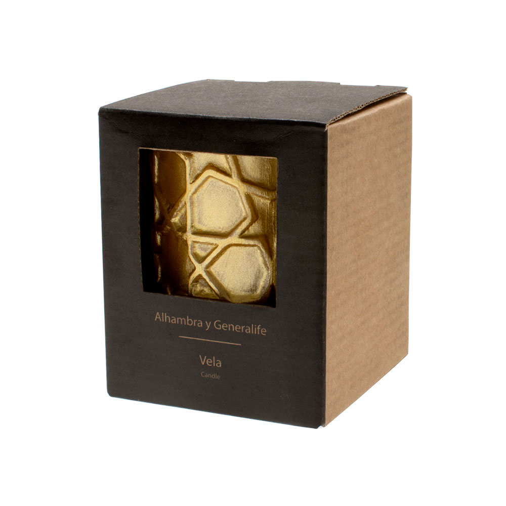 Step into a world where art and memory shape the everyday. The ALHAMBRA Mexuar Gold candle draws from the refined geometry of yesería — ornamental plasterwork found in the Mexuar Hall, where centuries of cultural fusion left behind a legacy of exquisite beauty. Crafted in sculpted relief and finished in warm gold tones, this 225 g candle invites a sense of harmony and depth into your space, both visually and aromatically.