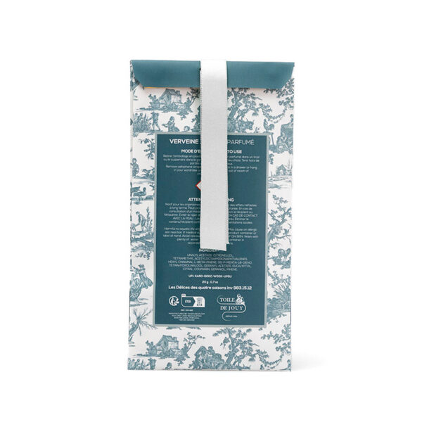 The Scented Sachet 20g Toile de Jouy is a charming addition to any space, bringing a touch of freshness and elegance. With the fragrance of Fig Tree, this sachet is presented in a packaging featuring a decorative pattern inspired by the scenes of the iconic Toile de Jouy fabric, titled “Les Délices des quatre saisons.” Ideal for closets, drawers, or as a sophisticated gift, the scented sachet not only beautifies the environment but also infuses a soft and welcoming aroma that transforms any space into a refuge of tranquility.
