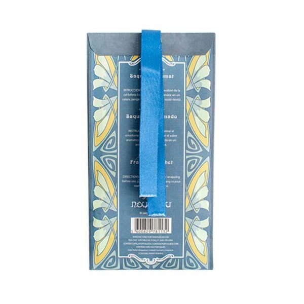 Scented sachet with a soft and delicate lavender fragrance decorated with customized wrapping paper inspired by the elegance and opulence in the Art-Noveau style with a satin ribbon detail.