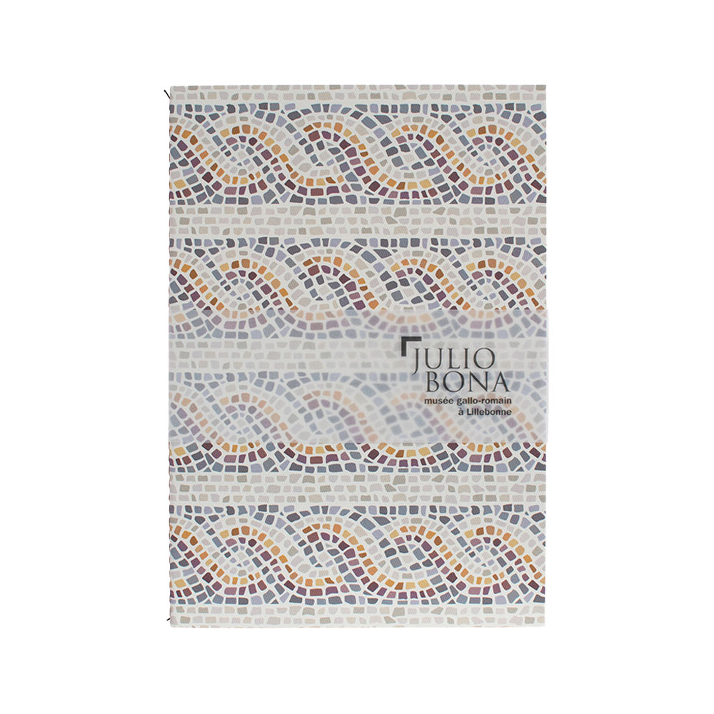 Its cover, crafted from high-quality Rives paper, features the Mosaique Tordu artwork, while the cream-colored pages inside provide a smooth writing surface for notes, sketches, or creative ideas. The black thread binding adds both durability and a touch of elegance, reflecting careful craftsmanship.