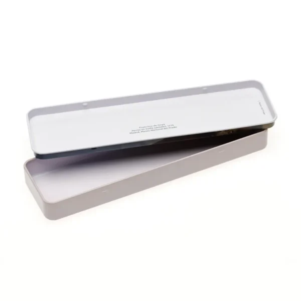 Rectangular aluminum pencil case, practical and compact. Featuring an image alluding to the work of the famous painter Francisco de Goya.