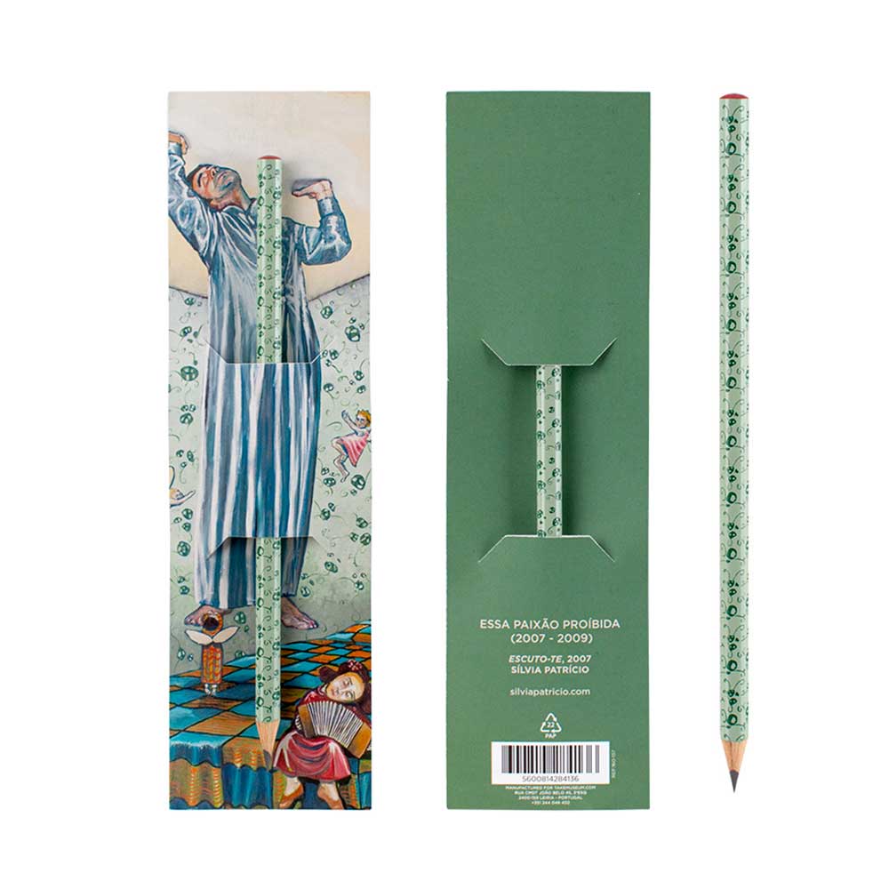 The pattern that adorns the body of the pencil evokes the essence of the artwork “Escuto-te,” reflecting the delicate lines and organic shapes characteristic of Sílvia Patrício’s work. Every detail is thoughtfully crafted to convey the tranquility and connection present in the original piece.
